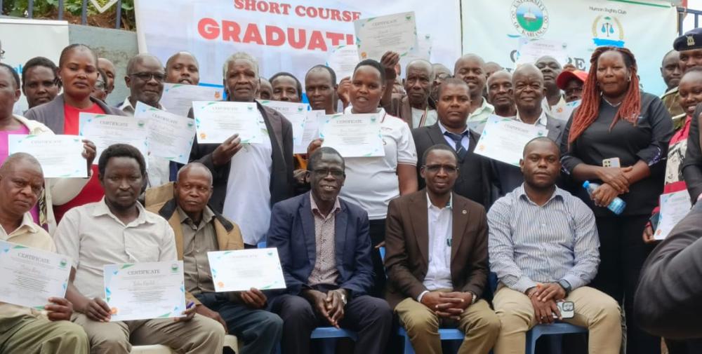 A training of it's own kind through the Course "Justice, Peace and Conflict Resolution (JPCR), the first one ever by a University in enhancing Security in Kenya's ethnic Conflict corridors was conducted by University of Kabianga Department of Humanities and Social Sciences through the Centre for Conflict Resolution and Human Rights Development (CCRHRD) to Community Peace Ambassadors of Sigowet Sub County Kericho, Nyakach Sub County of Kisumu, and North Nyamira of Nyamira County where 50 were trained and certified as Community Peace Ambassadors.
